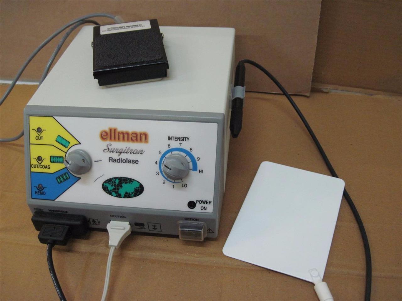 spac:Ellman Surgitron Radiolase 100-240 Volt InputPowers up as you can see in the photos, no further testingNeutral plate, foot pedal and handpiece included as picturedThis item should be fully tested before live use