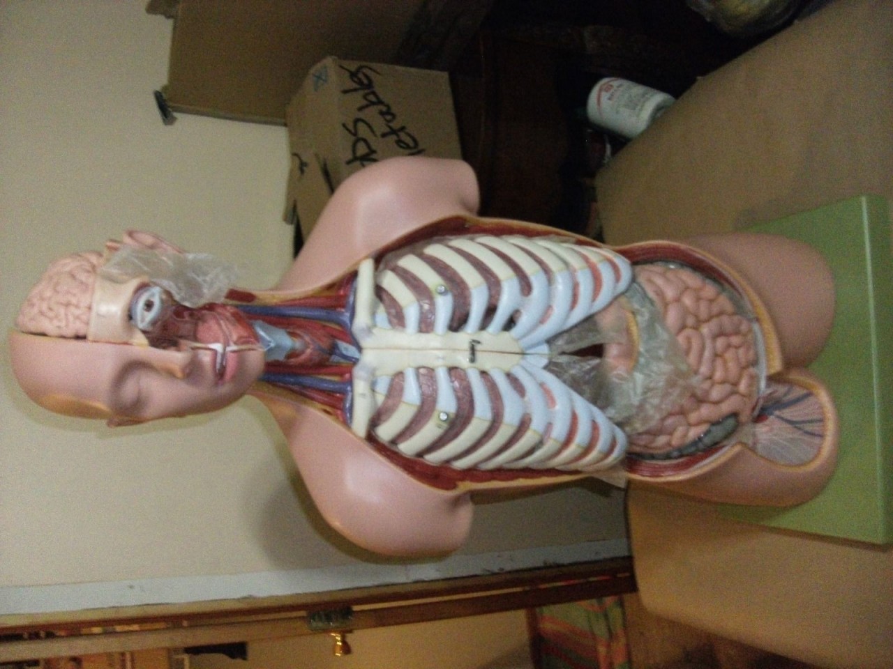This is a new item, seperates into 15 parts, left half of brain, eye with muscles and optic nerve, 2 halves of the lung, 2 halves of the liver, stomach, and large intestine (3) opening appendix, half of right kidney, half of bladder, torso. Mounted on green base. New perfect condition handcrafted and finished. This is a new model, not in original box but is 100% complete and in perfect condition.